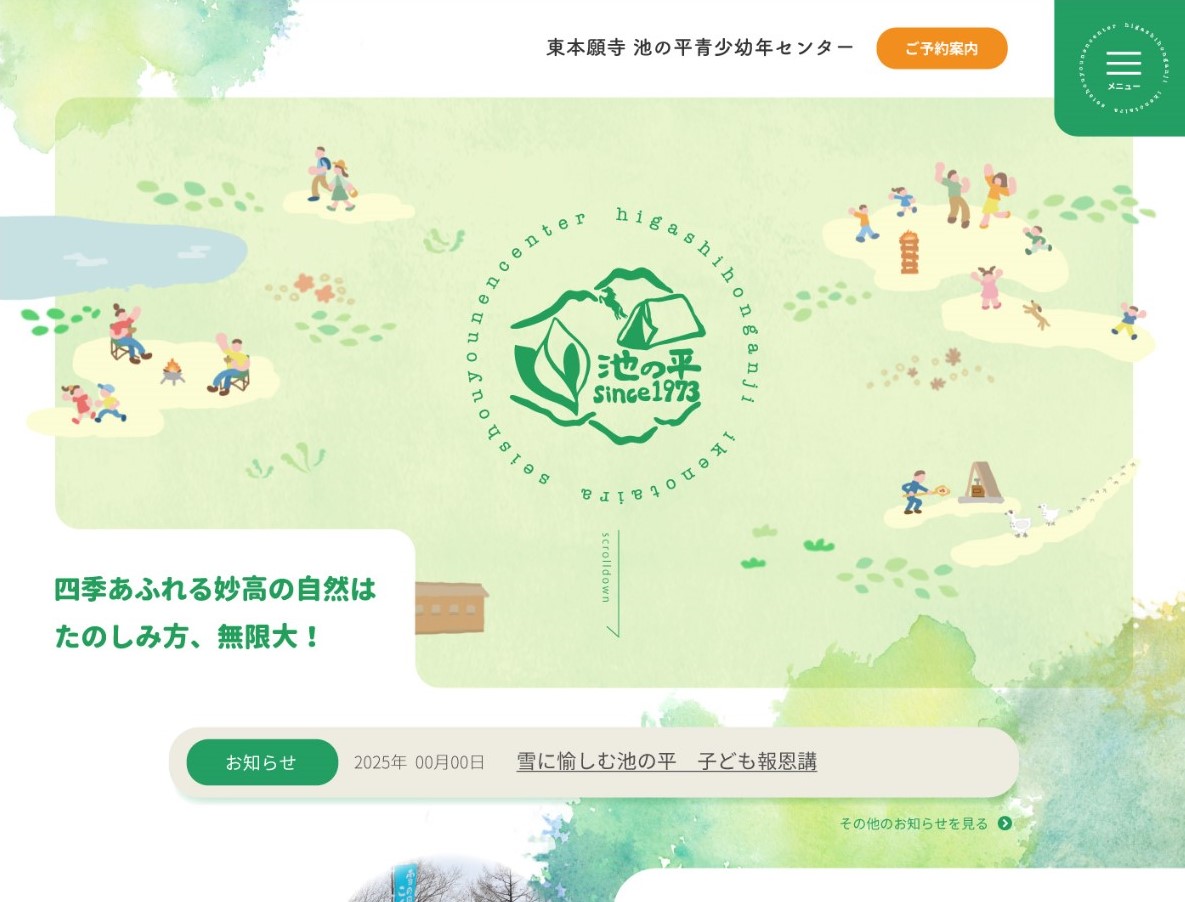 東本願寺の施設ということで、楽しい雰囲気も表現しつつ、直線的でスッキリした表現にし